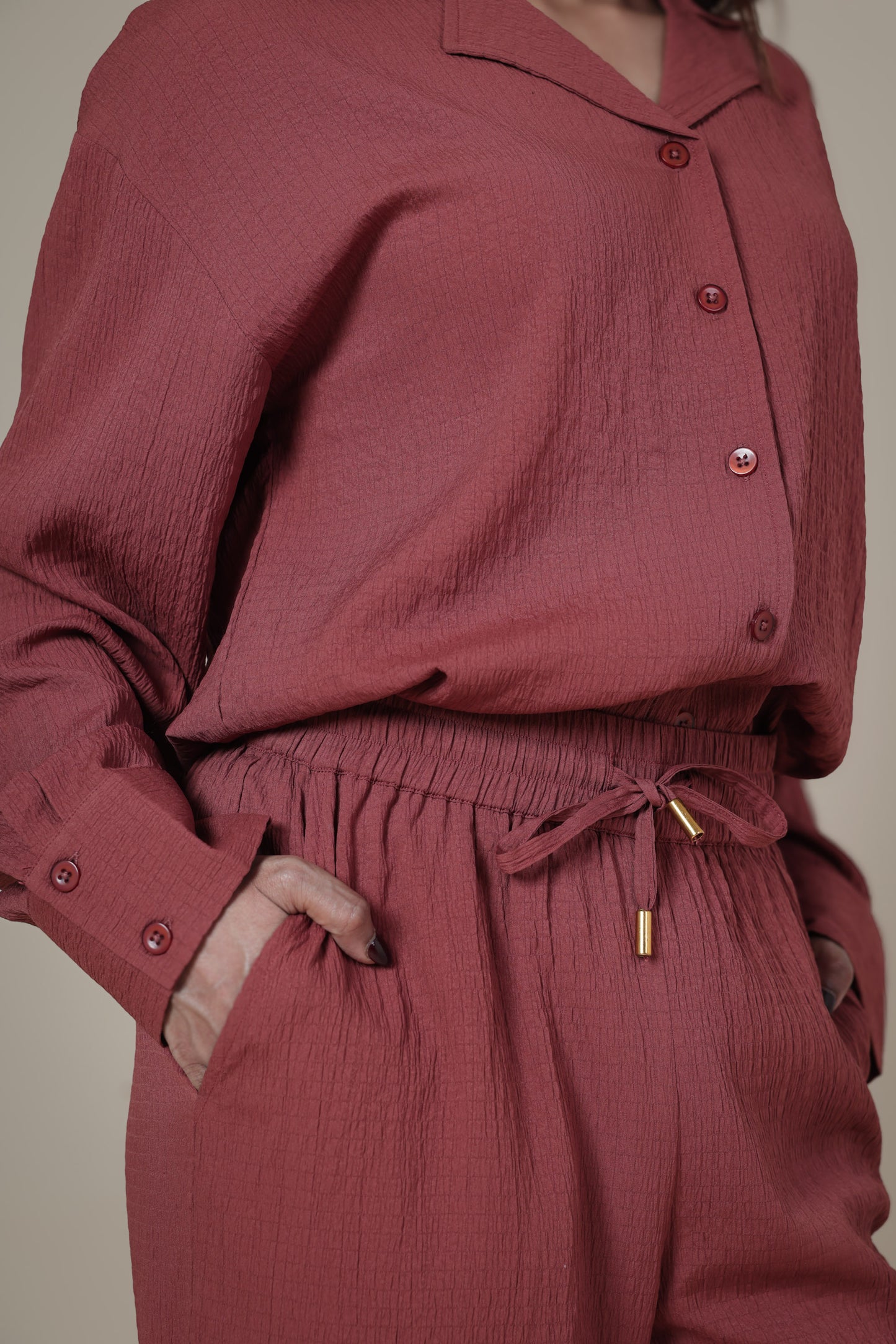 Experience the ultimate in relaxed style with these wide-leg trousers fashioned from a soft and flowing light knit fabric.The comfortable drawstring waist allows for an adjustable fit, while the wide-leg silhouette offers freedom of movement. Perfect for lounging at home or stepping out for casual errands, these trousers provide both comfort and effortless style.