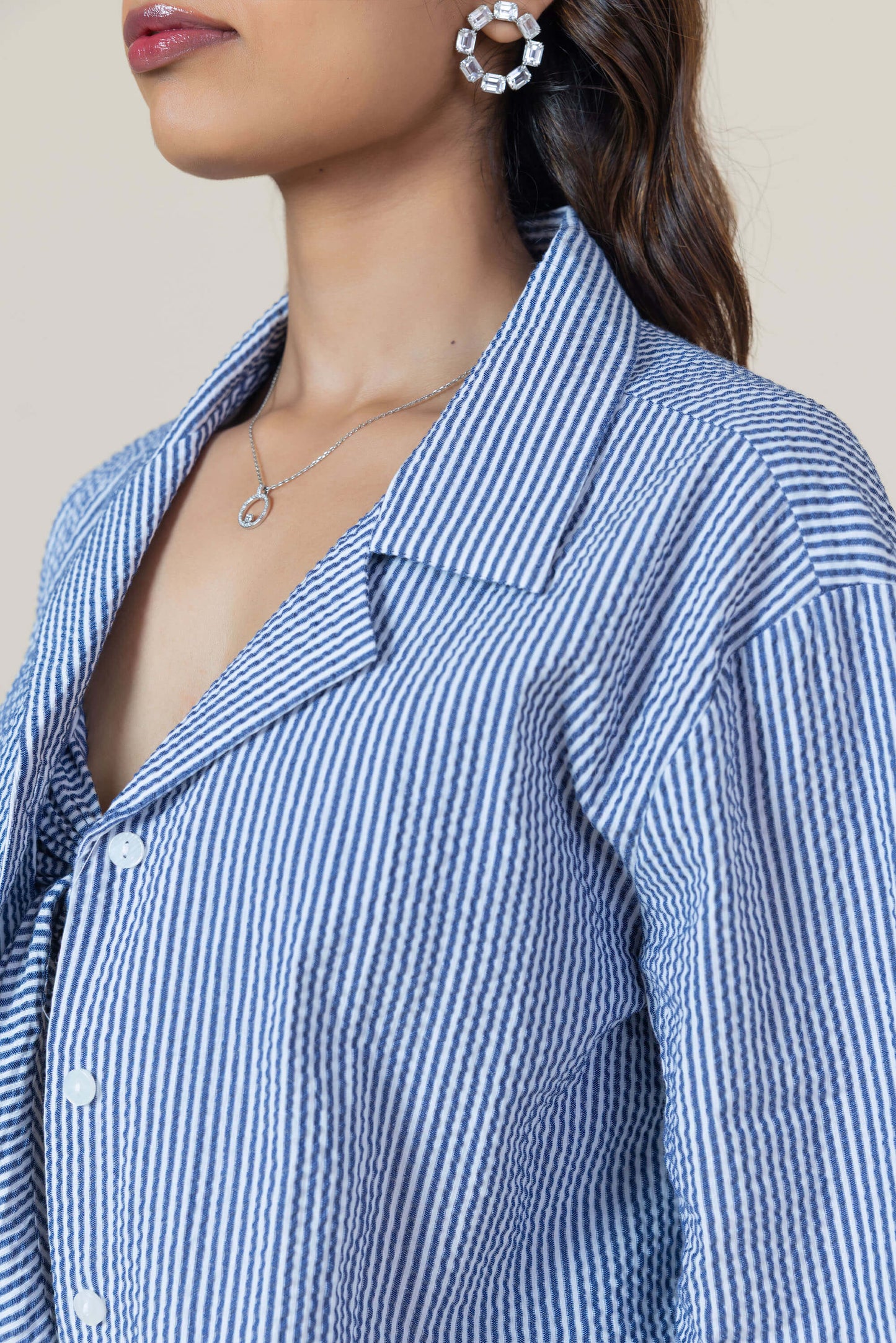 Embrace a relaxed and effortlessly stylish vibe with this oversized long-sleeved shirt in a classic stripe pattern.The comfortable, roomy fit makes it perfect for layering over other pieces or wearing open as a light cover-up. Its timeless design adds a touch of casual chic to any outfit.