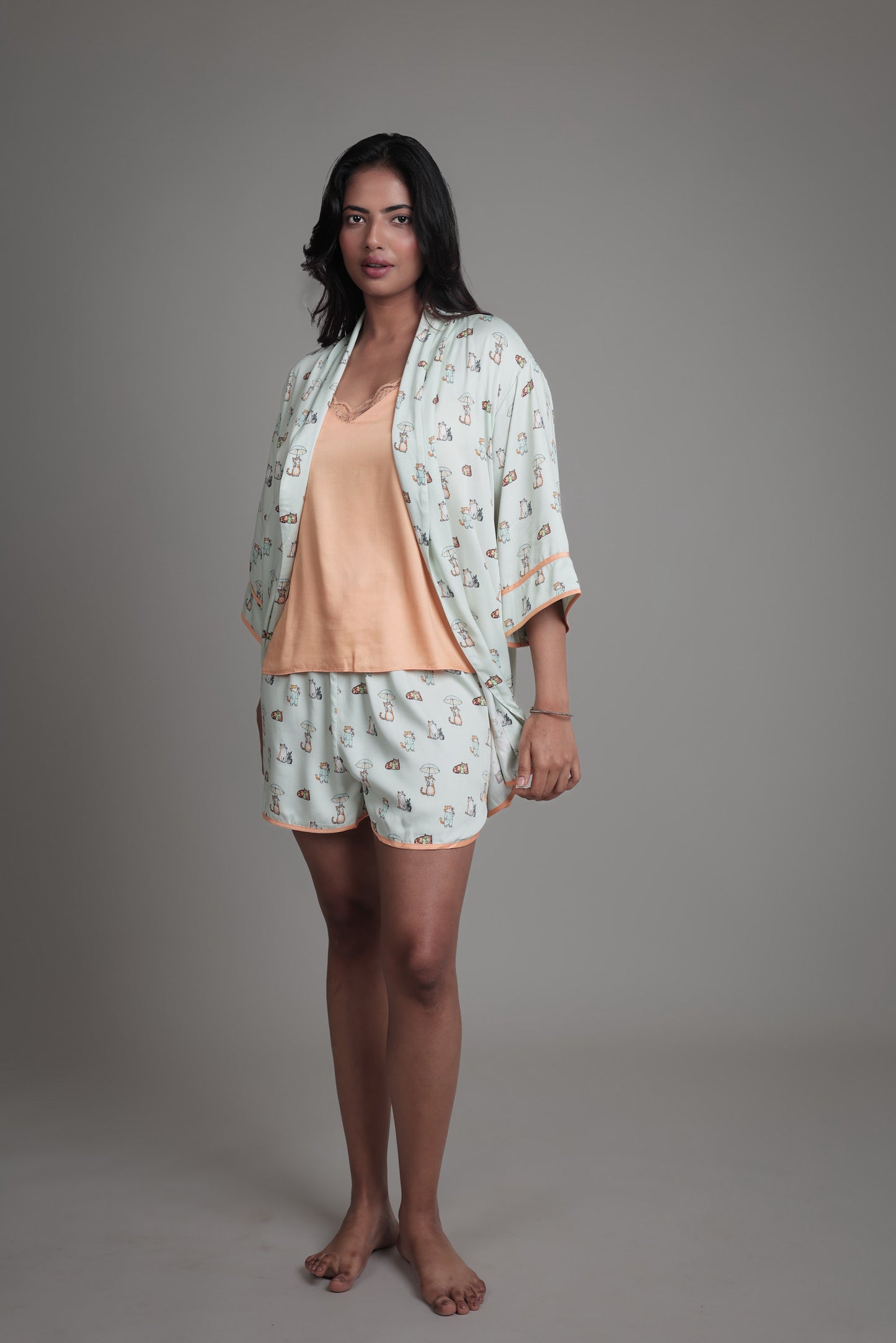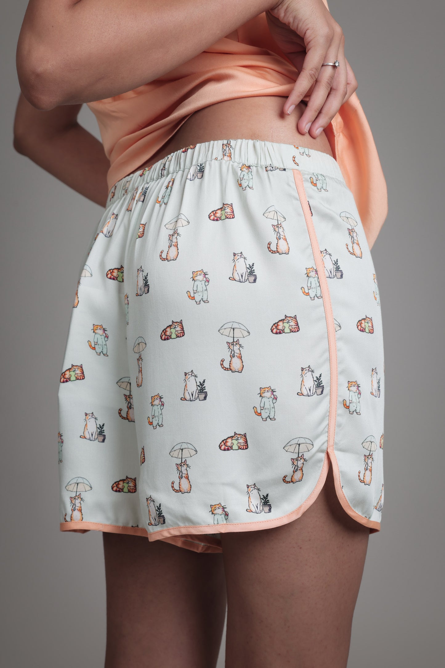Stay cool and comfortable in these relaxed-fit drawstring shorts, made from buttery-smooth viscose satin.The elasticated waistband ensures an easy fit, while the cat print and contrast piping detail add an element of fun.Style it with the matching robe and cami for a coordinated look that feels as good as it looks.